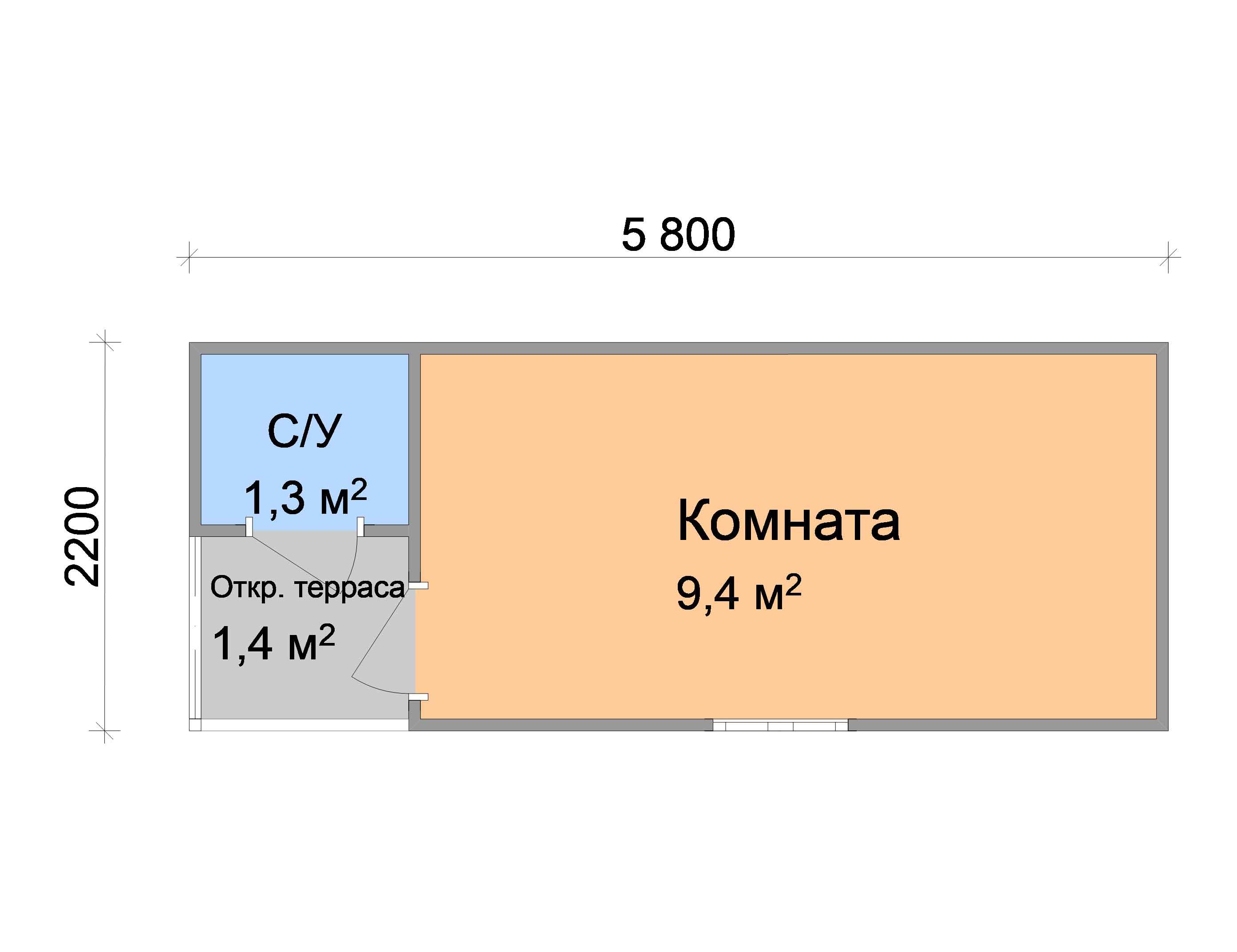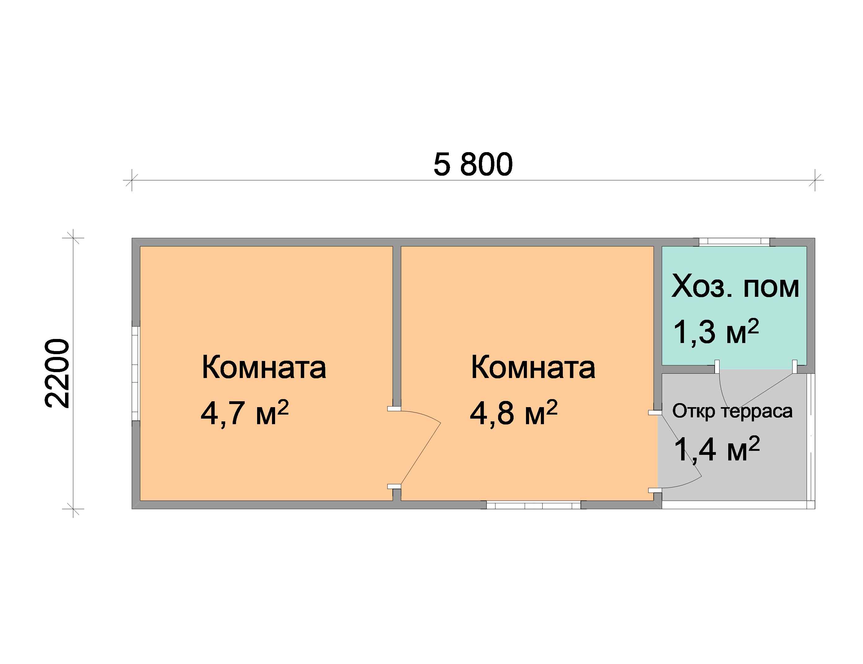Дачная бытовка Василёк5.8x2.212.76ДВП-Оргалит: