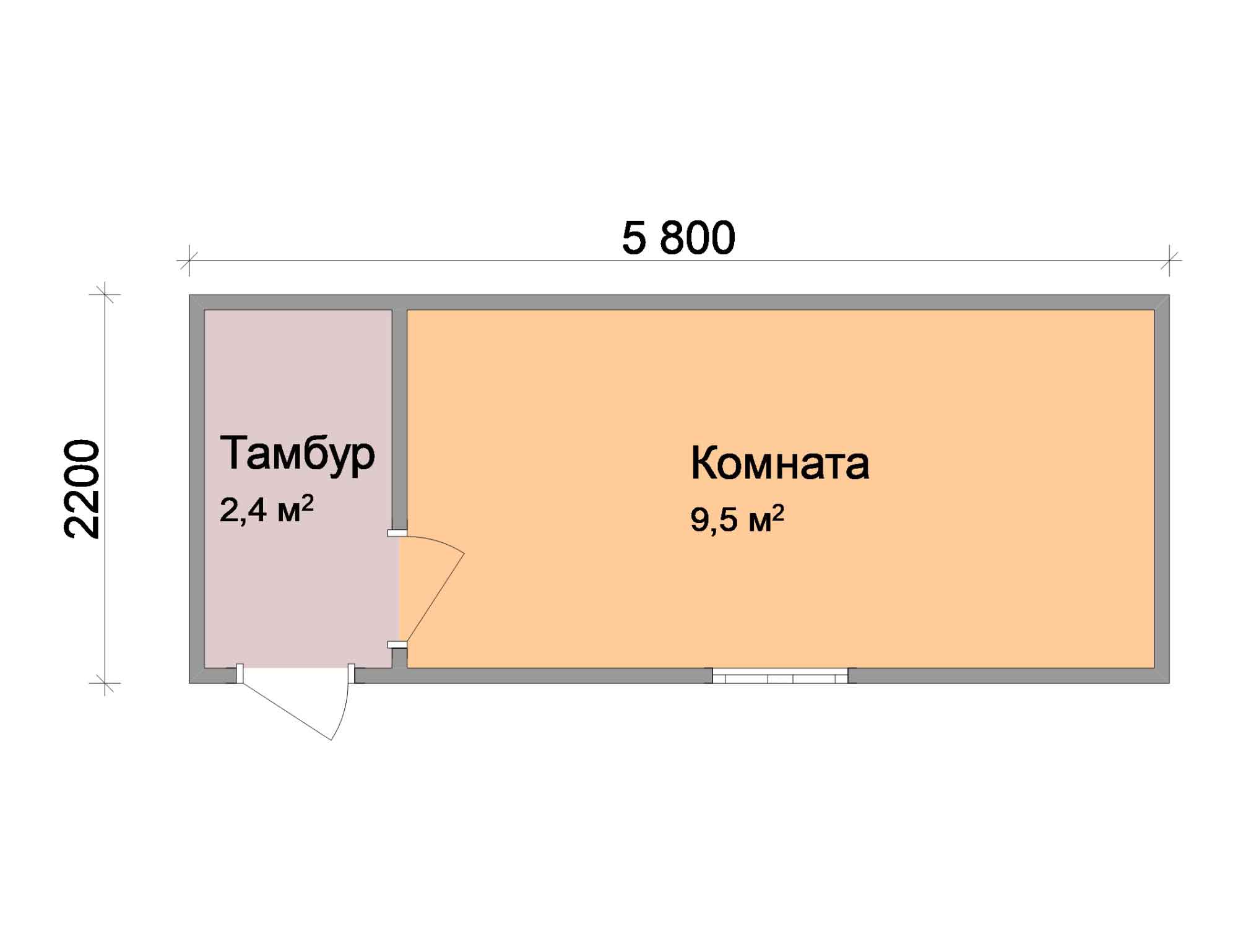 Блок контейнер с тамбуром 5850х24005,85х2,414,04ДВП-Оргалит: