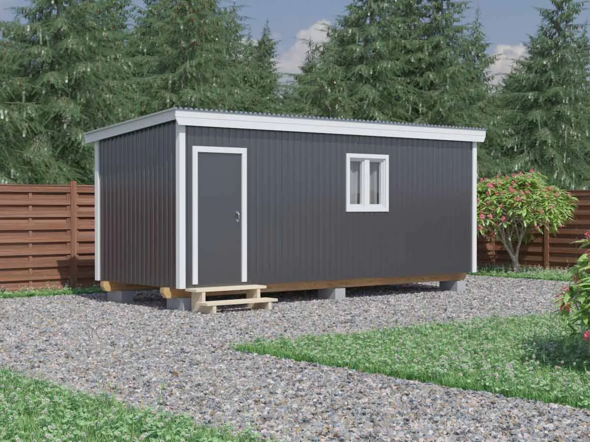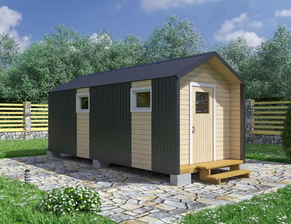 Бытовка для дачи в стиле хай-тек с цветным профлистом 6х2.46х2.414.4ДВП-Оргалит: